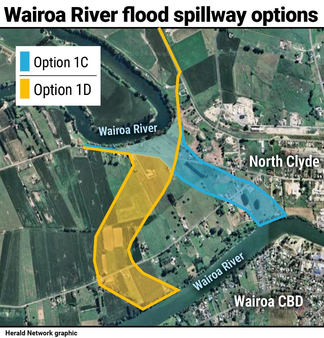The preliminary design on the spillway is 170m wide and 2m deep, enclosed by small stopbanks averaging 1.2m high. Several homes in Frasertown will also be lifted.