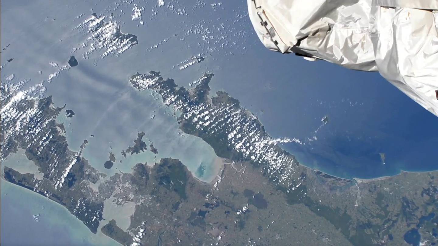 Footage shared to social media shows a portion of the North Island, including Auckland, as seen from space at 1:35pm on January 2, 2022.Â
