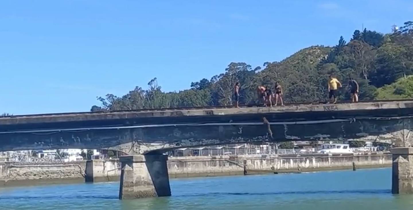 Sickening footage has emerged showing a group of people throwing a dog off a high bridge in Gisborne.Â