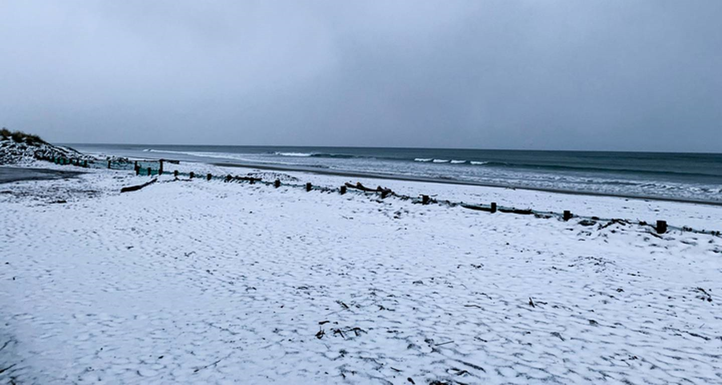 Snow on New Brighton Beach, Christchurch, yesterday morning. Photo / Julian Litt