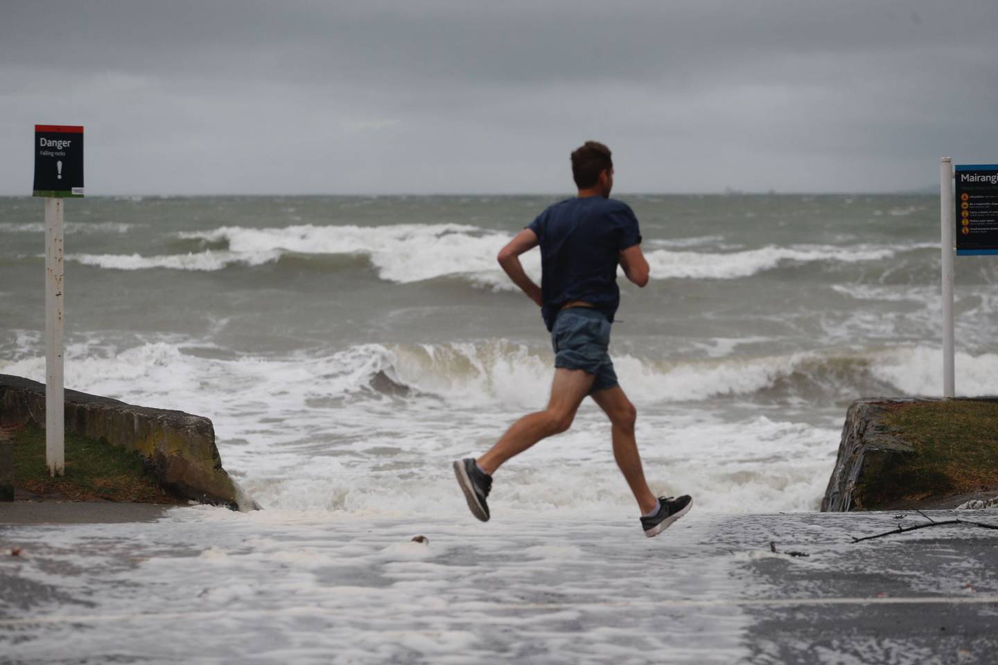 Walkers at Mairangi Bay have been confronted by strong winds today.