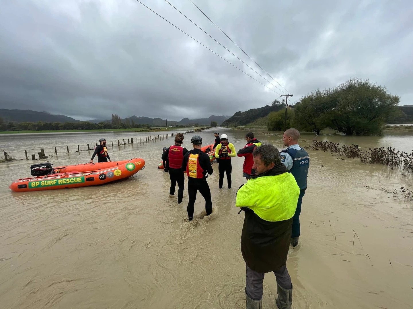 They were trapped about 12km off Tolaga Bay and a large truck that had gone to rescue them had been stopped about 4kms before reaching them due to the rising water levels.