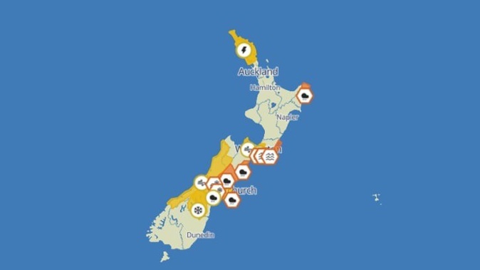 Heavy rain warnings have also been issued for Banks Peninsula, North Canterbury to Hamner, and the Kaikoura coast and ranges, until 6am Friday. Mid-Canterbury also has a heavy rain watch. The West Coast will also fall under a strong wind watch until 3pm Thursday.