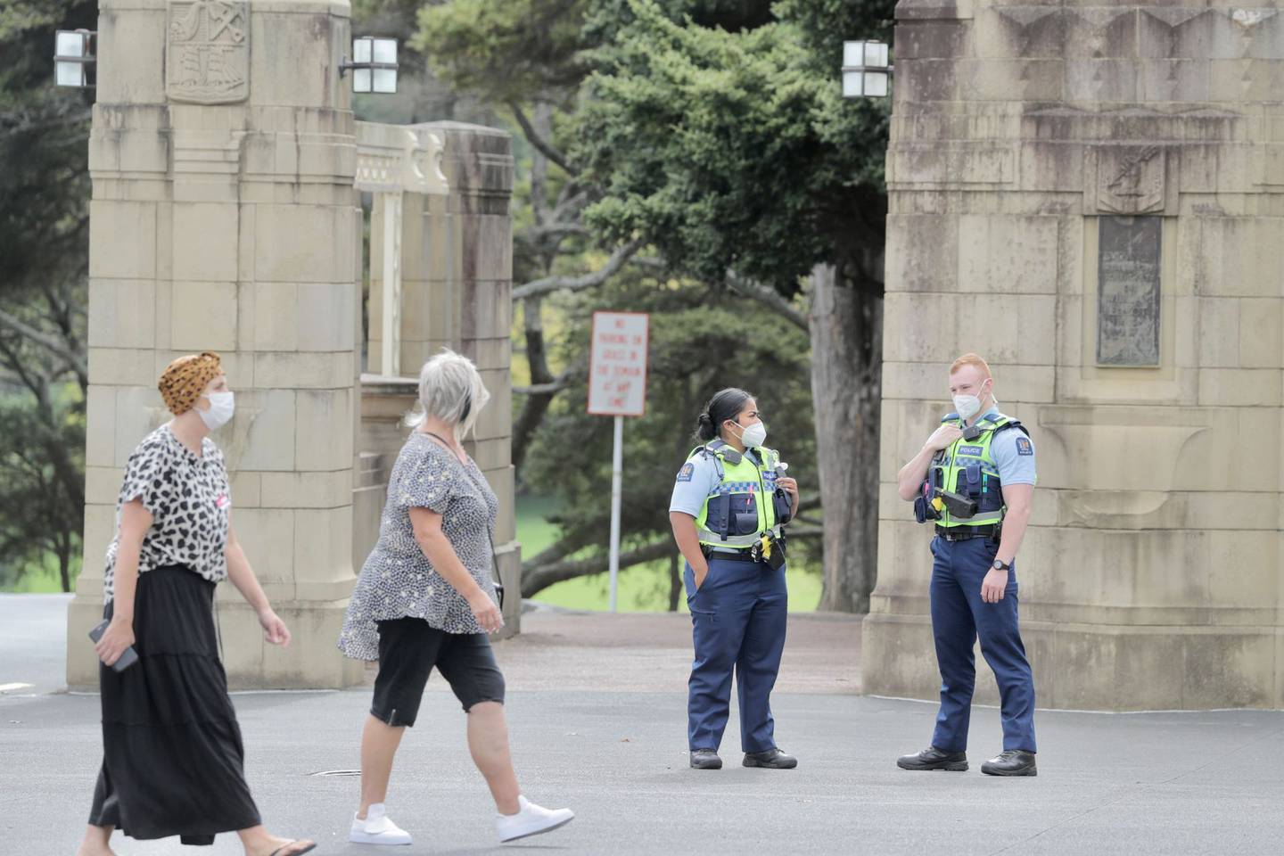 Police have been patrolling entrances to Auckland Domain this week. Photo / Michael Craig