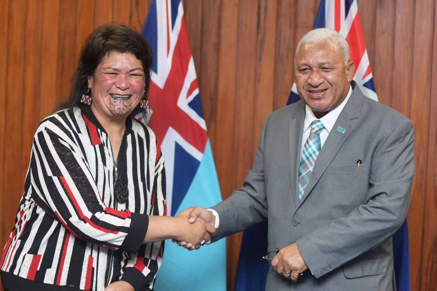 Minister of Foreign Affairs Nanaia Mahuta meeting Fiji Prime Minister Frank Bainimarama in Suva in March. Photo / Supplied
