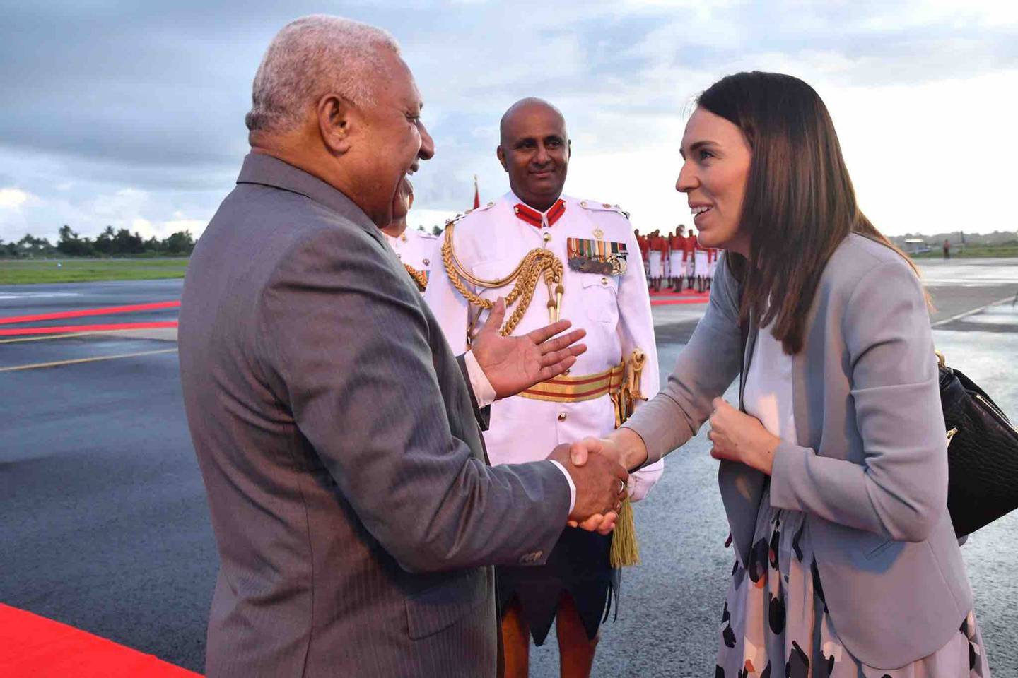 Fiji's Prime Minister Frank Bainimarama with New Zealand Prime Minister Jacinda Ardern in Suva in February 2020. Photo / SuppliedÂ