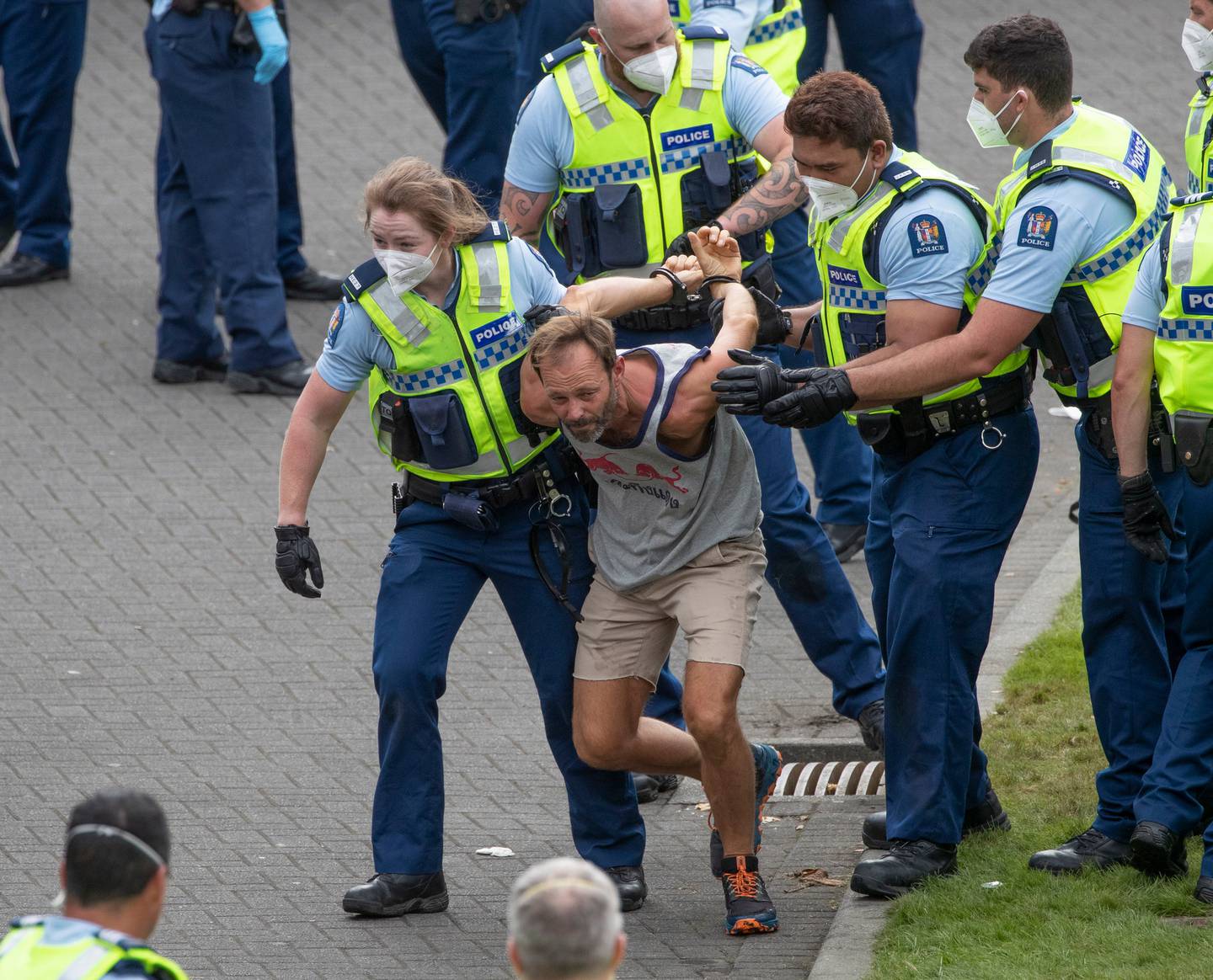 Photo by Mark Mitchell. Police arresting anti-vax and mandate protesters at Parliament, Wellington. 10 February, 2022. NZ Herald photograph by Mark MitchellÂ