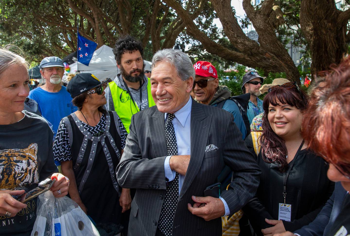 Former deputy prime minister Winston Peters at the protest camp. Photo / Michael NeilsonÂ