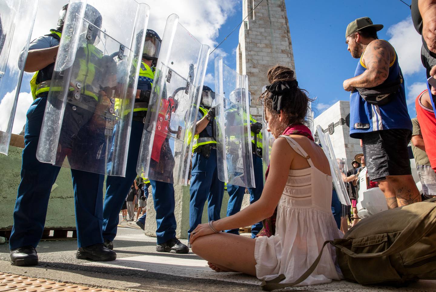 An hour of violent confrontation followed as protesters faced off against officers trying to move concrete bollards closer to Parliament and reclaim Wellington streets.Â