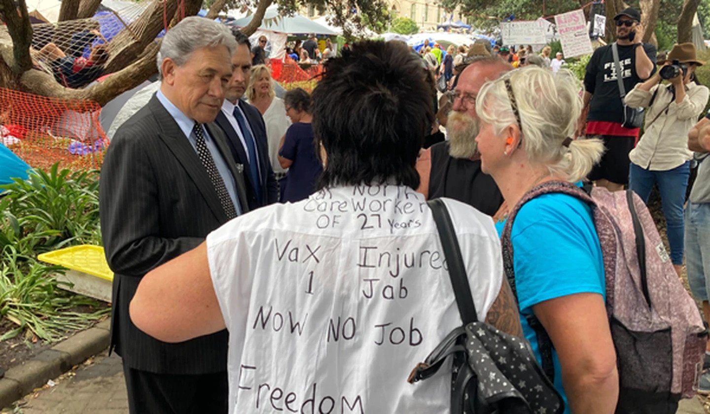 Shortly after Ardern's press conference, former deputy prime minister Winston Peters arrived at the camp and addressed protesters without wearing a mask.Â