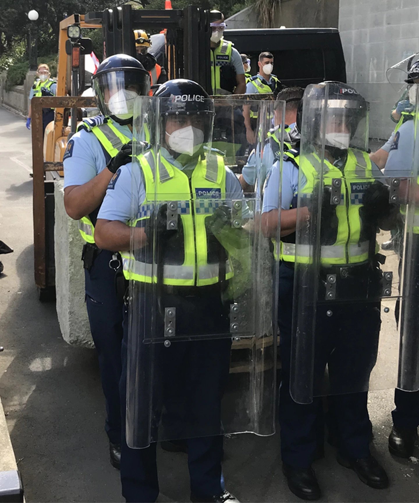"It has been widely publicised that the protesters have established their own medical support within the cordon area. The Wellington Free Ambulance Tactical Emergency Support team will remain behind the cordon to support the NZ Police response."