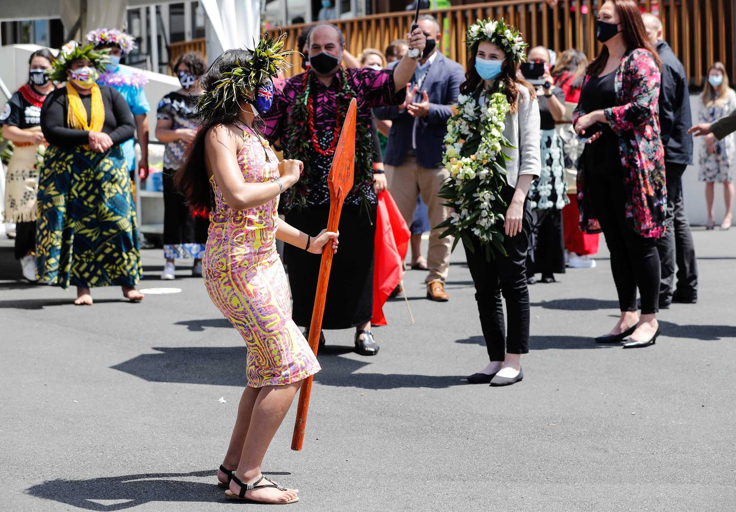 Prime Minister Jacinda Ardern visiting the Pacific youth-led vaccination event at Fale o Samoa. Photo / Dean Purcell