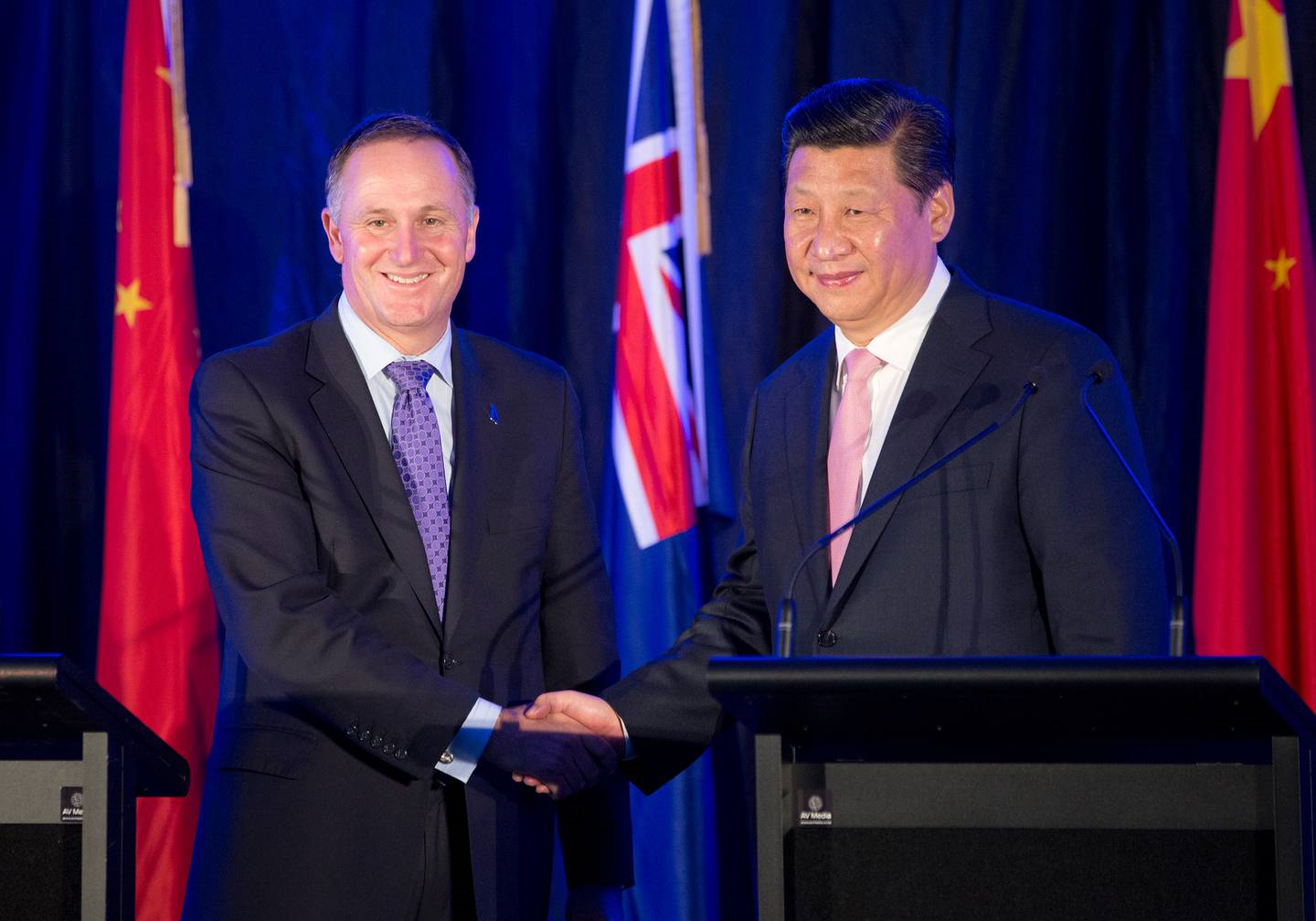 John Key and Chinese President Xi Jinping shaking hands after their bilateral talks at Premier House in Wellington in 2014. (Photo / File)