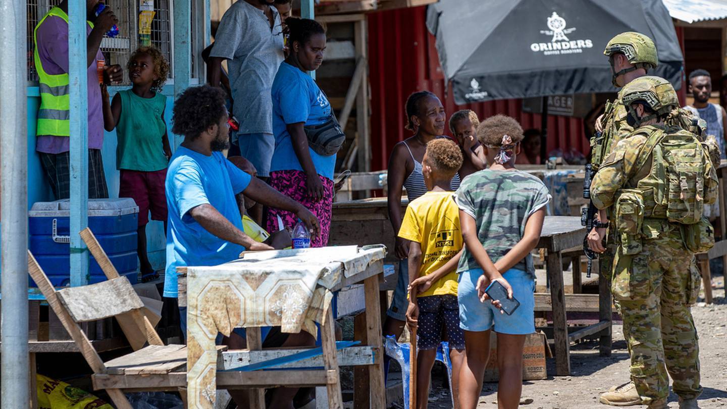 Australian Army soldiers talk with local citizens during a community engagement patrol through Honiara, Solomon Islands. Photo / Australia Defence Force via APÂ