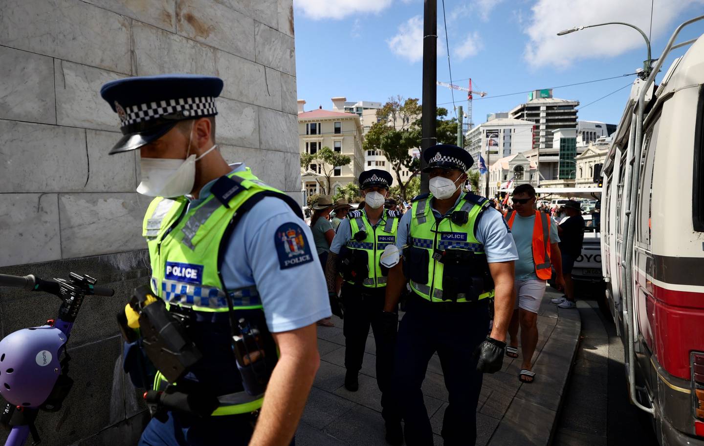 Police on the streets surrounding Parliament in Wellington. Photo / George HeardÂ