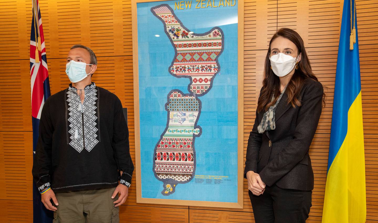 Ukraine-New Zealander Andriy Legenkyy and Prime Minister Jacinda Ardern. Photo / Mark MitchellÂ