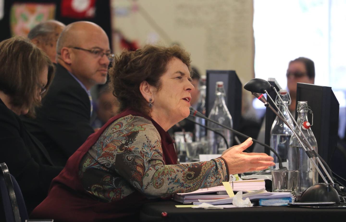 Historian and Waitangi Tribunal member Robyn Anderson grilling one of the Crown lawyers during Te Paparahi o Te Raki inquiry in 2017. Photo / Northern Advocate