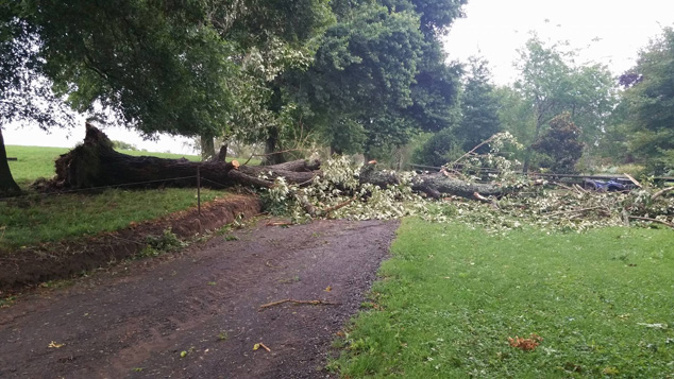A Waikato family are trapped in their home after a massive tree crashed over their driveway.