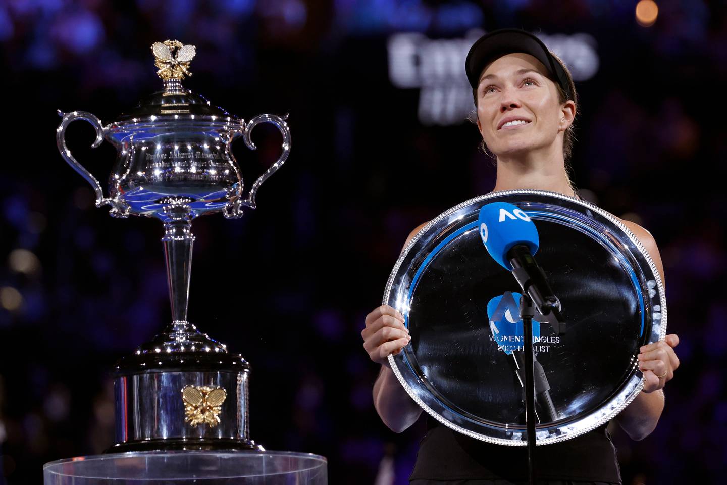 Danielle Collins of the U.S. holds her runner-up trophy after her loss to Ash Barty of Australia in the women's singles final at the Australian Open. Photo / APÂ
