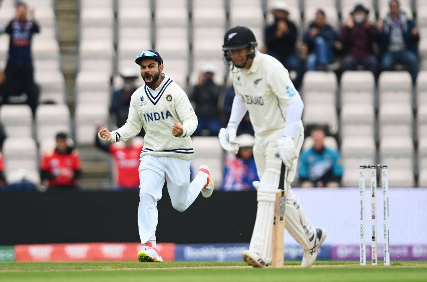 Virat Kohli was energetic as usual in the field, including for the dismissal of Ross Taylor. (Photo / Getty)
