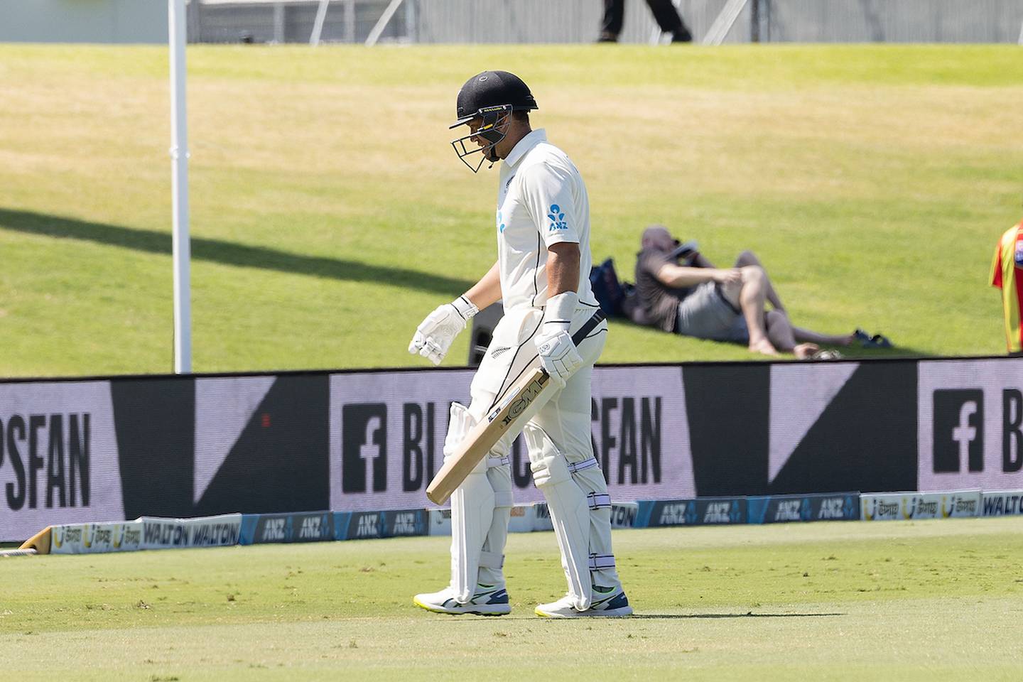 Black Caps batsman Ross Taylor walks from the field after being bowled early on day five. Photo / PhotosportÂ
