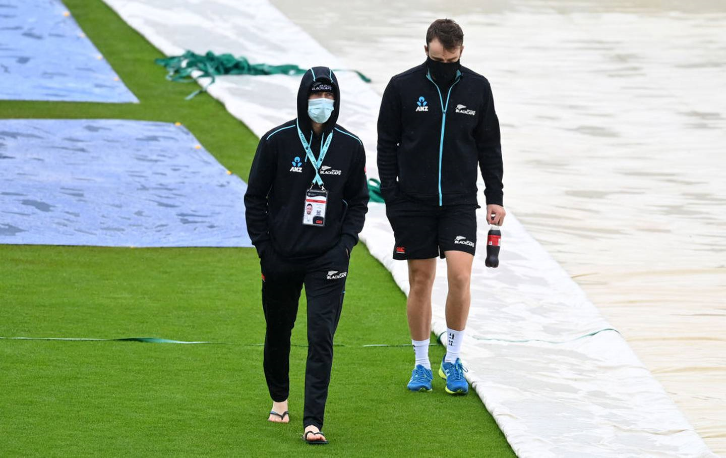 Blackcaps duo Devon Conway and Tom Blundell walk across the outfield. (Photo / Getty)