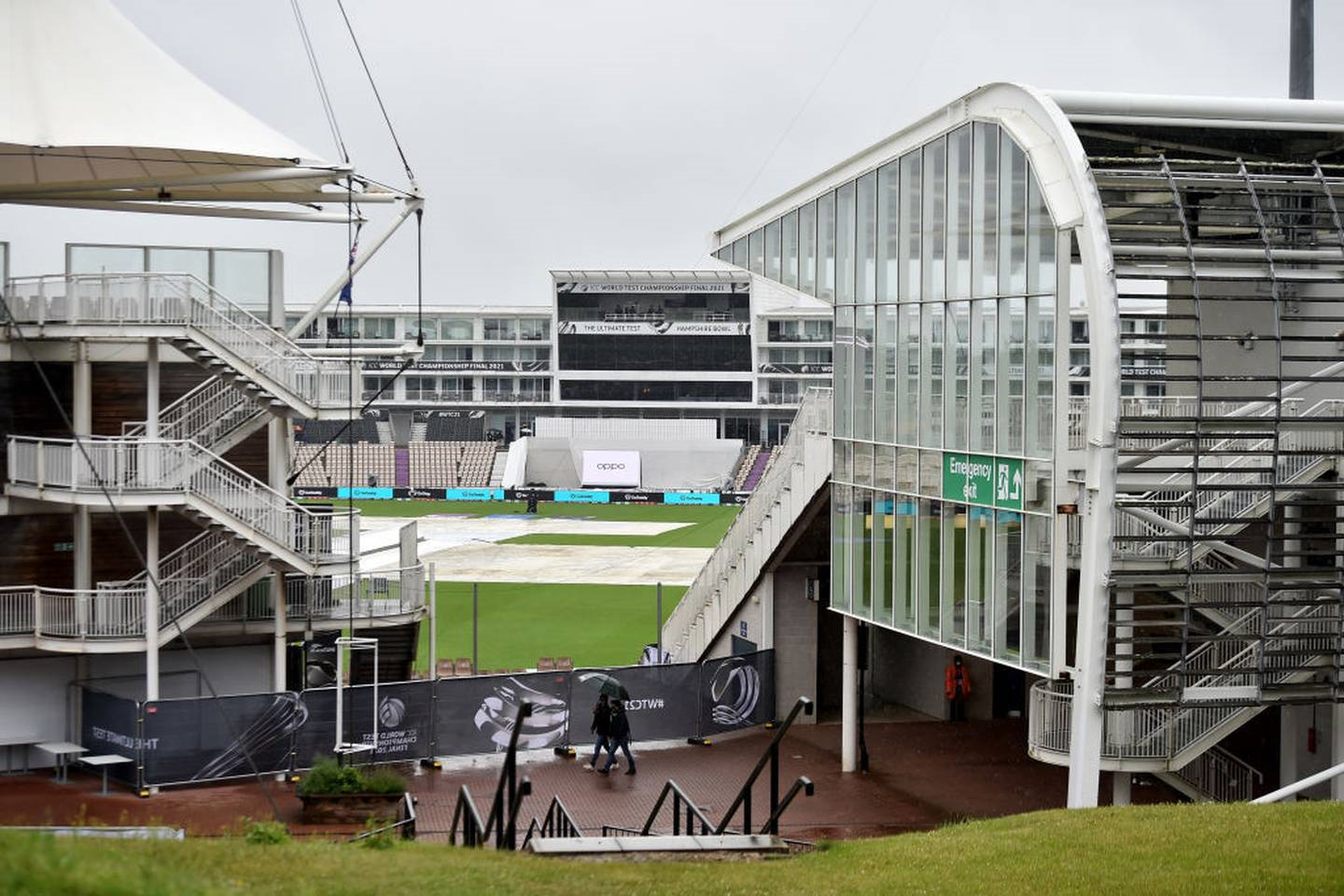 A general view outside the Hampshire Bowl as rain delayed play during Day 4 of the ICC World Test Championship Final between India and New Zealand. (Photo / Getty)