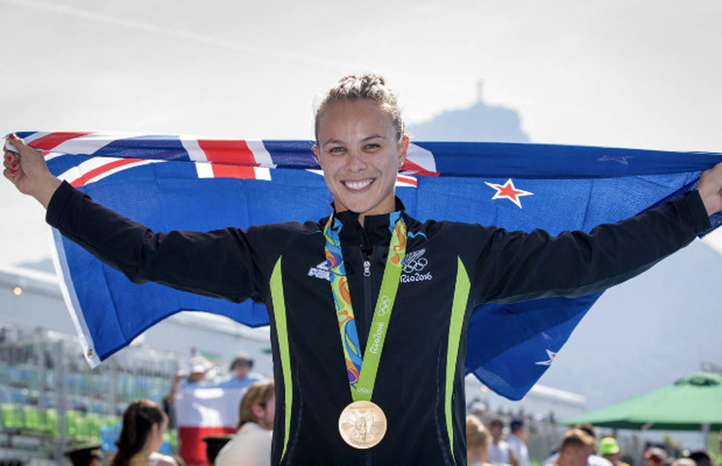 Lisa Carrington celebrates her gold medal in the K1 200m event at the Rio de Janeiro Olympics in 2016. (Photo / Photosport)