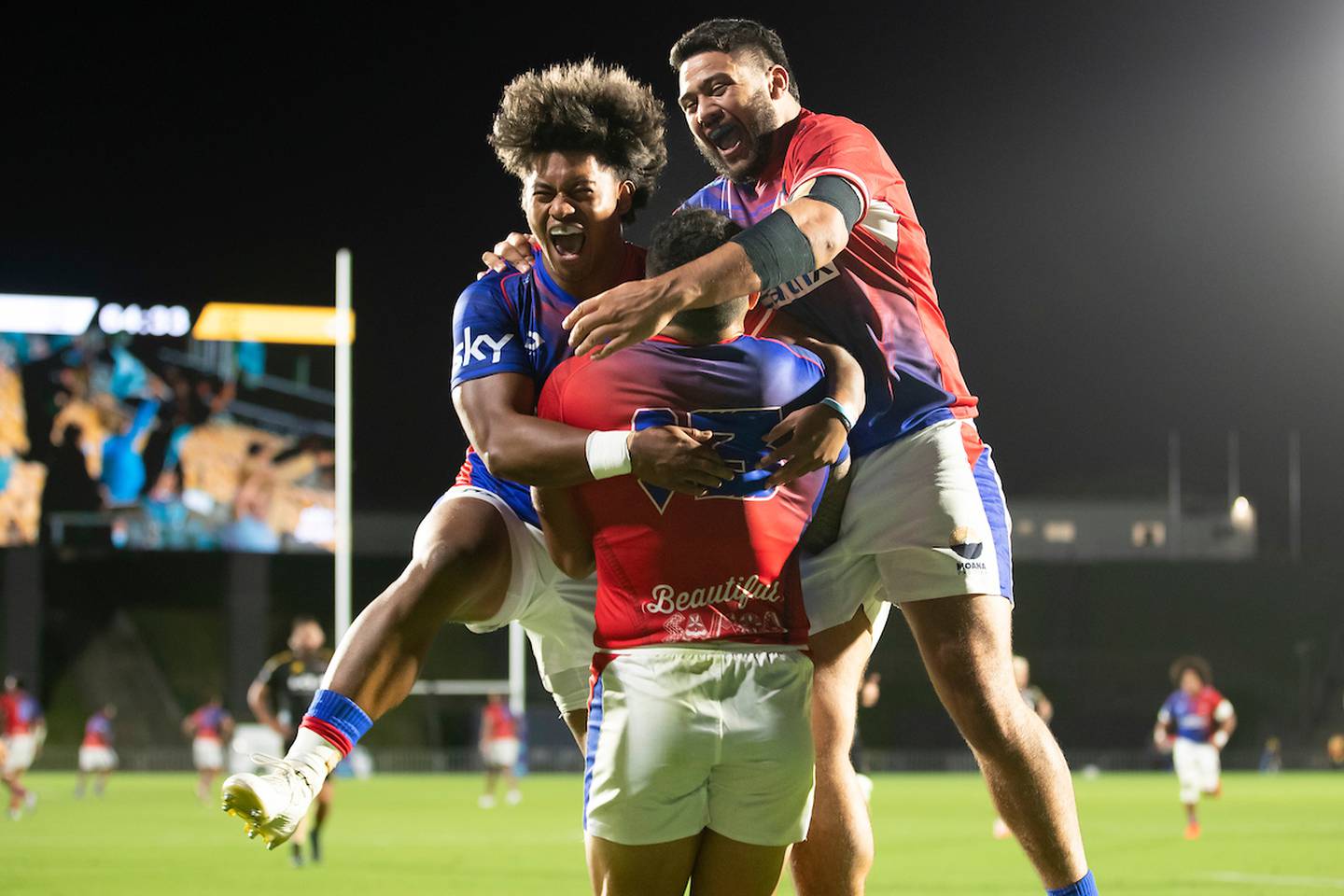 Aaron Mauger jumping on seats in the coaching box and the jubilant player embraces at the final whistle showed just how much this means to Moana Pasifika.Â