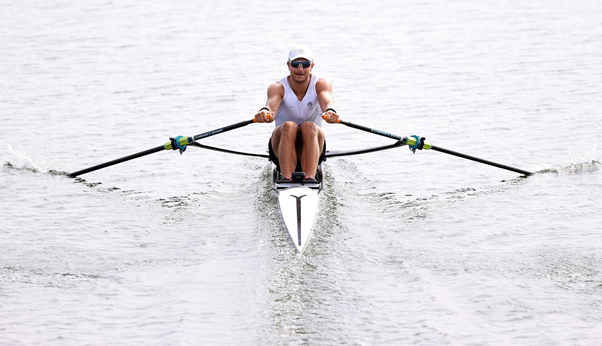 Jordan Parry in action during the rowing heats. Photo / Getty