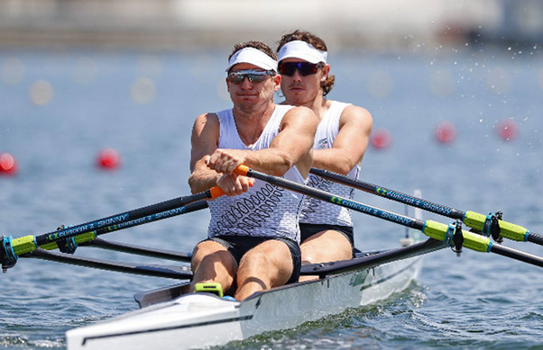 Chris Harris (L) and Jack Lopas are through to the quarterfinals in the men's Olympic double sculls. Photo / Getty