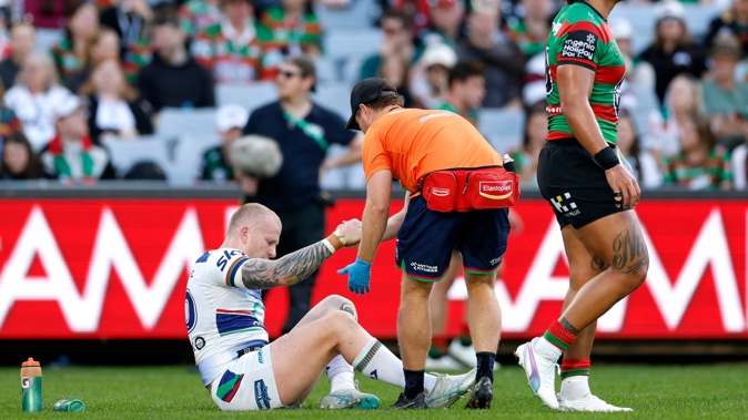 The 31-year-old was in visible pain after his right knee buckled awkwardly as he attempted to tackle Rabbitohs halfback Jayden Sullivan midway through the first half.