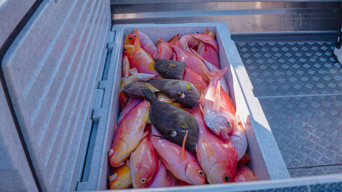 On Thursday afternoon, documentary maker Mike Bhana filmed a group of fishermen returning from nearby coastal fisheries with what he says was 1500-2000 pink maomao fish.