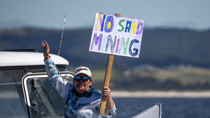 The protest comes after a petition of 14,000 signatures in opposition to sand mining at TeĀkau Bream Bay was handed to Green MP Hūhana Lyndon last week.