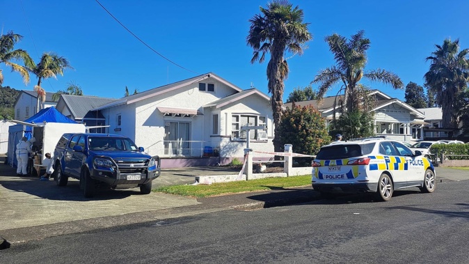Police maintained a presence on Norfolk St on Sunday as homicide investigations continued. Neighbouring properties included Emerge Aotearoa and Arataki Ministries.