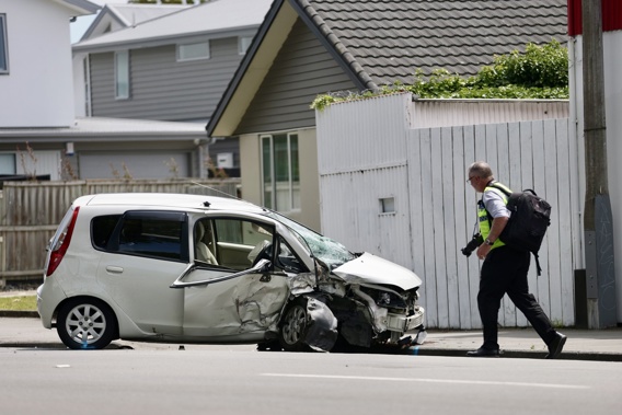 Officers spiked this car on Bealey Ave before it crashed. Photo / George Heard