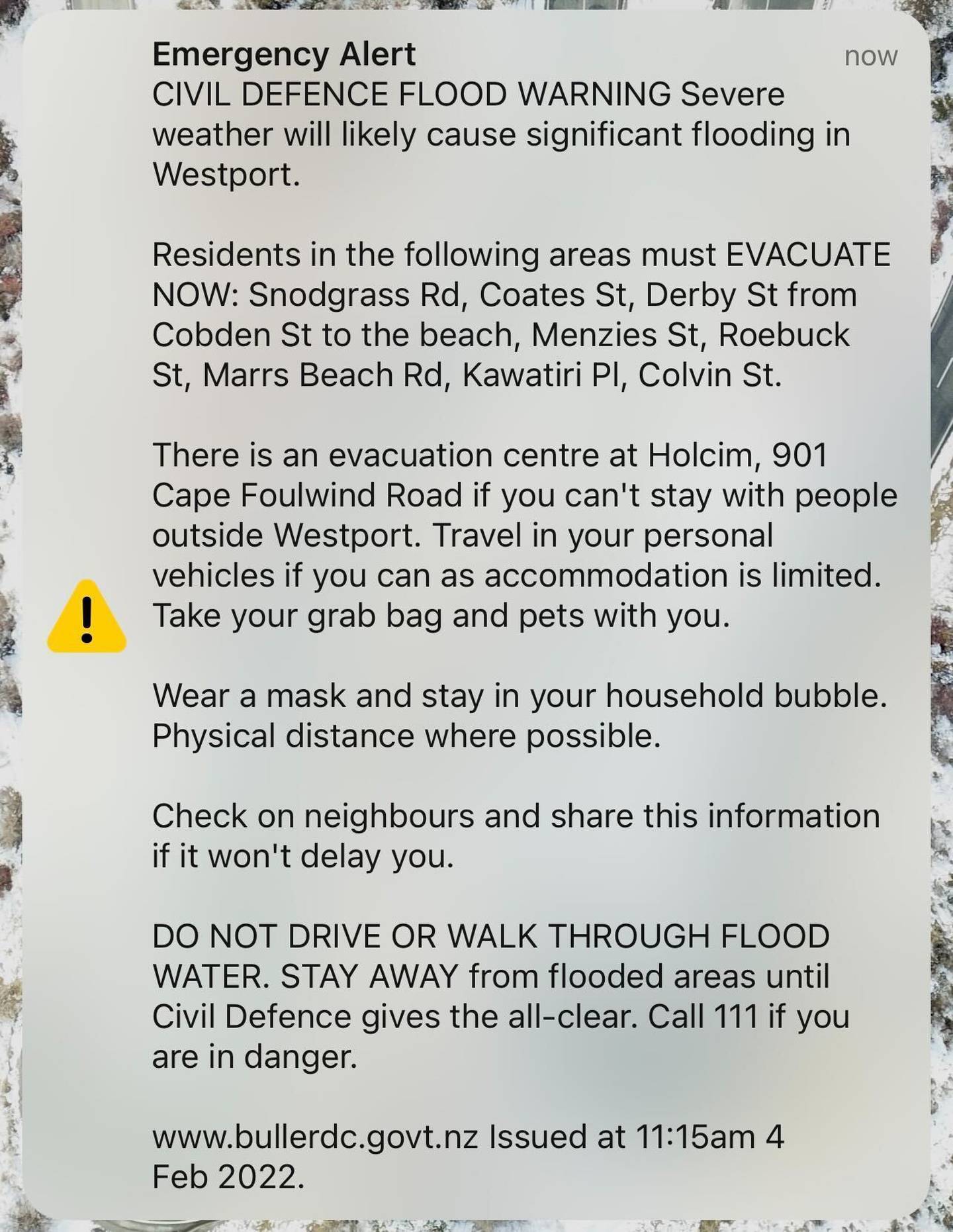 "The coast road and the Buller Gorge are open, so moving east and south out of town are still safe options. The forecast is showing significant rain for northern Buller, so residents should avoid travelling north."