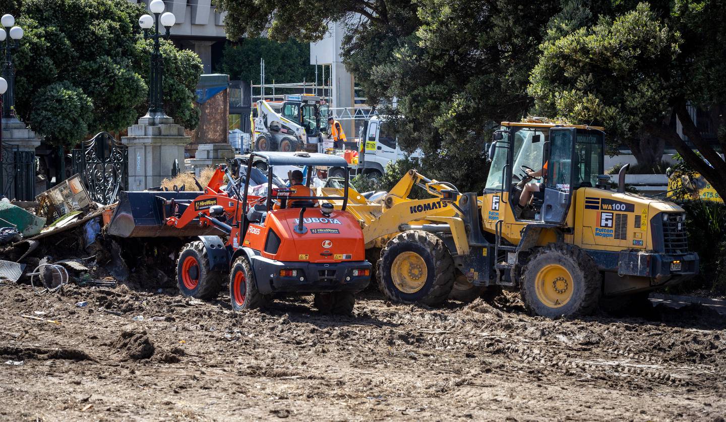 Diggers have been removing debris outside Parliament. Photo / Mark MitchellÂ