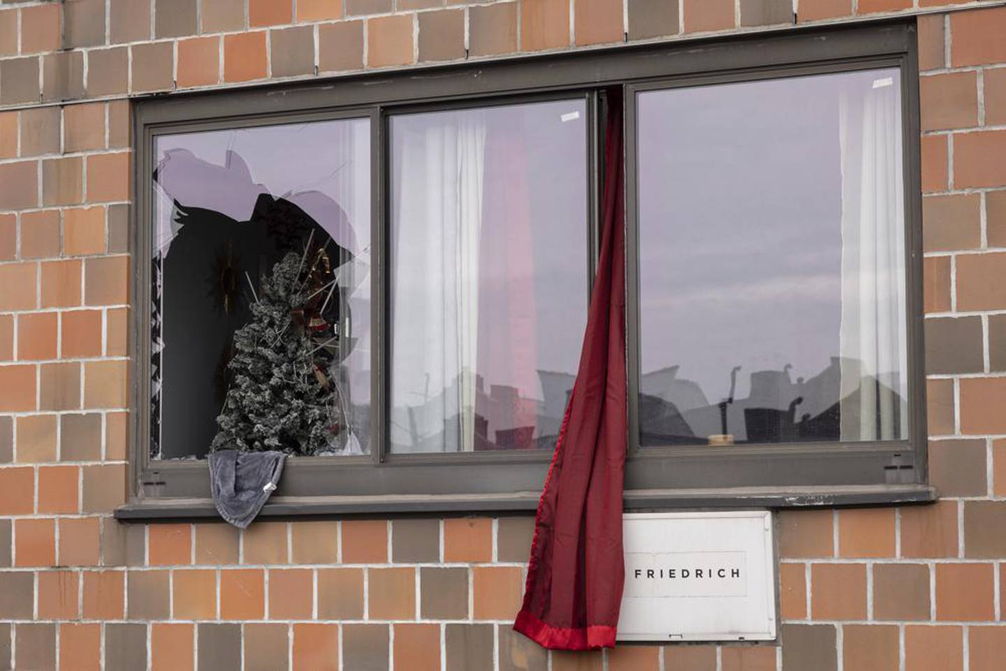 A curtain hangs outside a window at an apartment building in the Bronx on Sunday, Jan. 9, 2022, in New York, where a fatal fire occurred. Photo / APÂ