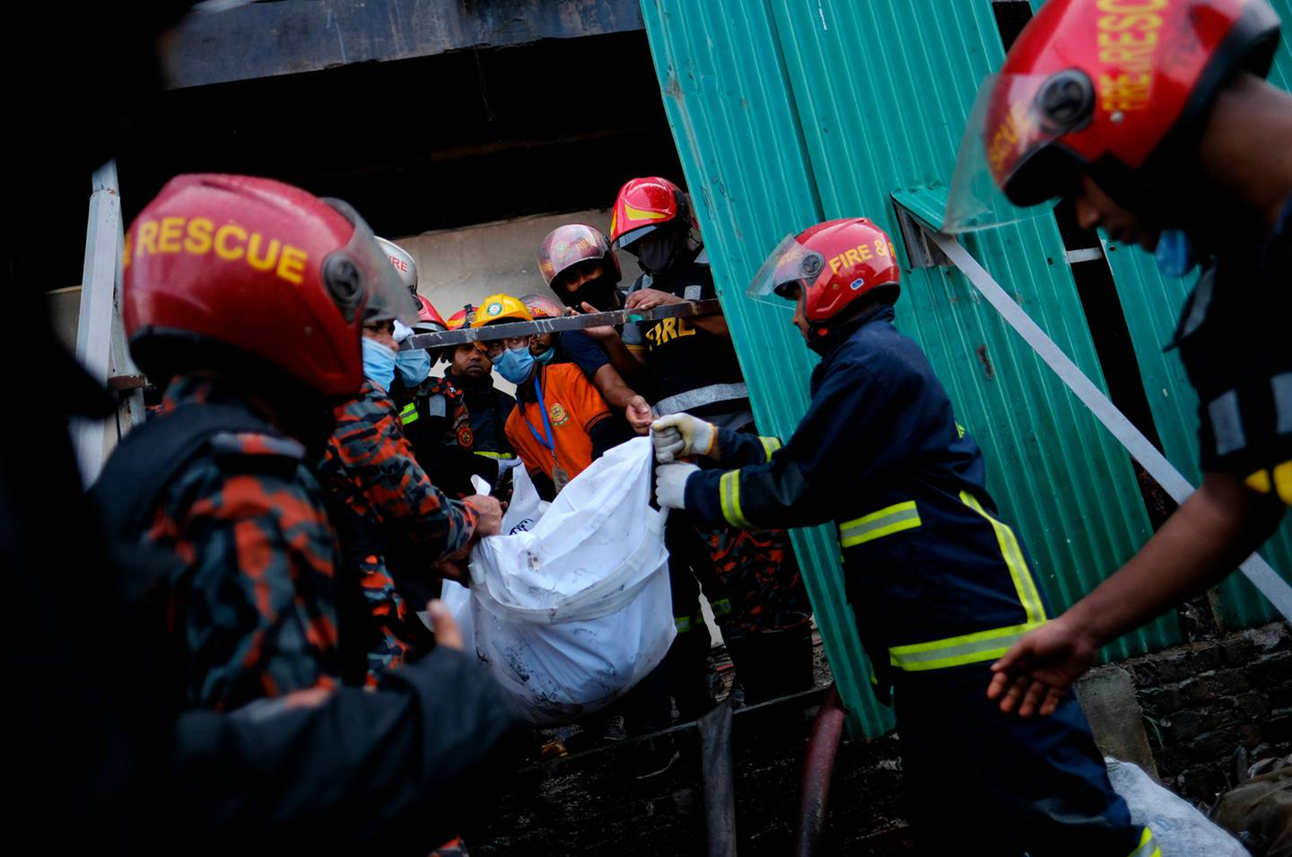 The blaze began Thursday night at the five-story Hashem Foods Ltd factory in Rupganj, just outside Dhaka, sending huge clouds of black smoke billowing into the sky. Police initially gave a toll of three dead, but then discovered piles of bodies on Friday afternoon after the fire was extinguished.
