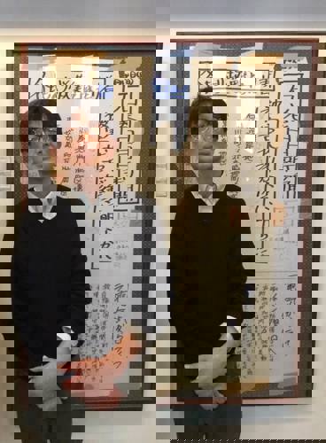 Former editor of the daily newspaper Ishinomaki Hiroyuki Takeuchi became famous after he and his colleagues handwrote hundreds of copies of the paper in the week after the disaster to keep people informed.