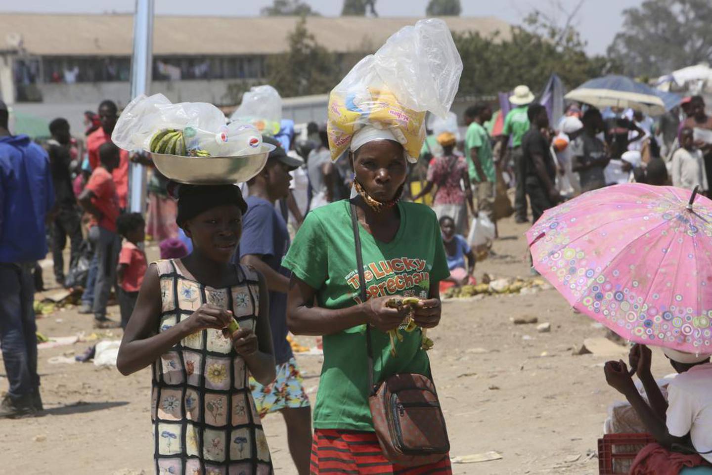 A woman and her daughter sell refreshments at a busy market on the outskirts of the capital Harare on Monday, November 15 this year. Photo / AP