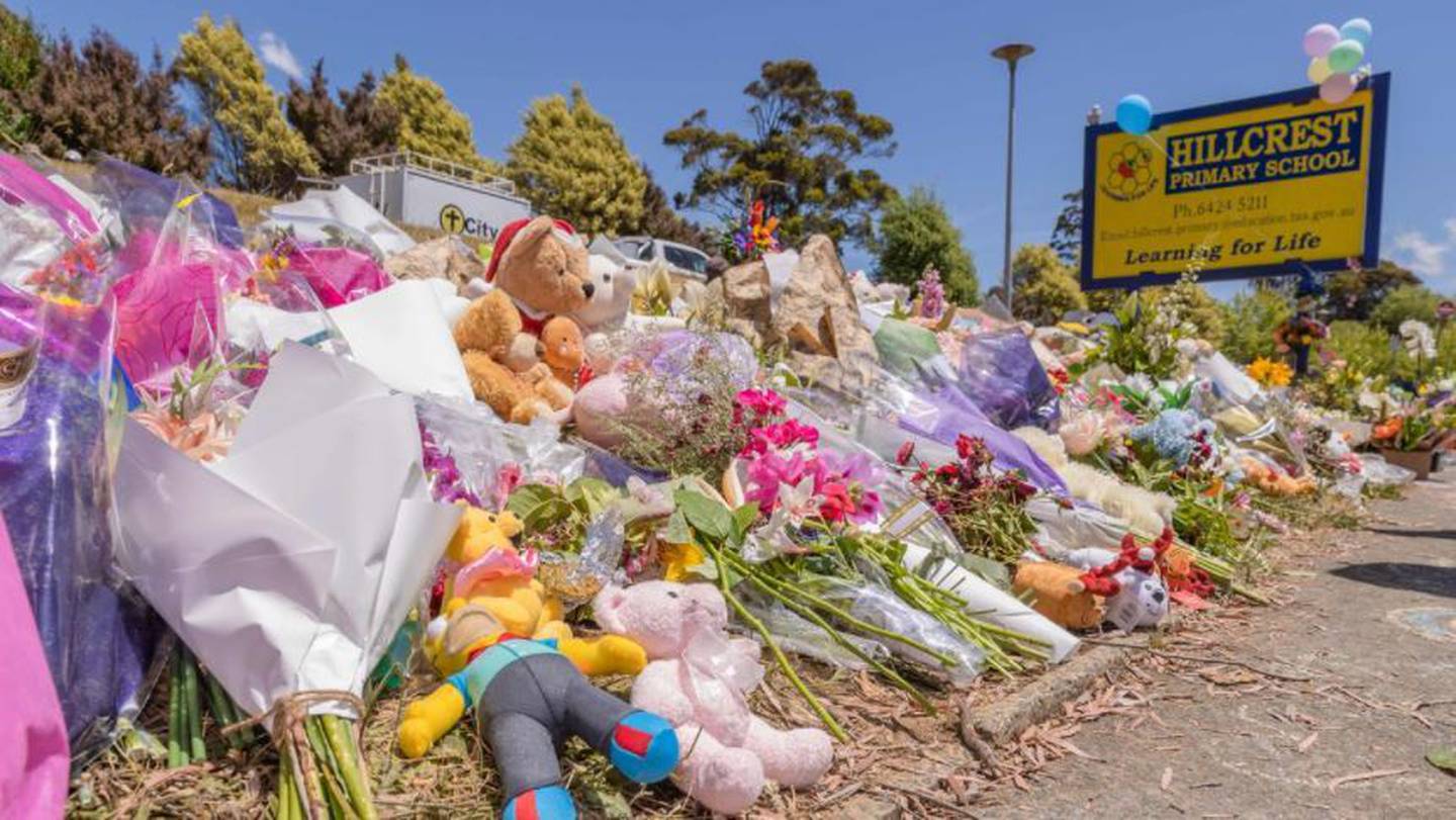 Mourners have paid tribute to the children who died after gust of wind swept away a jumping castle at Hillcrest Primary School Devonport Tasmania. Picture / Jason EdwardsÂ