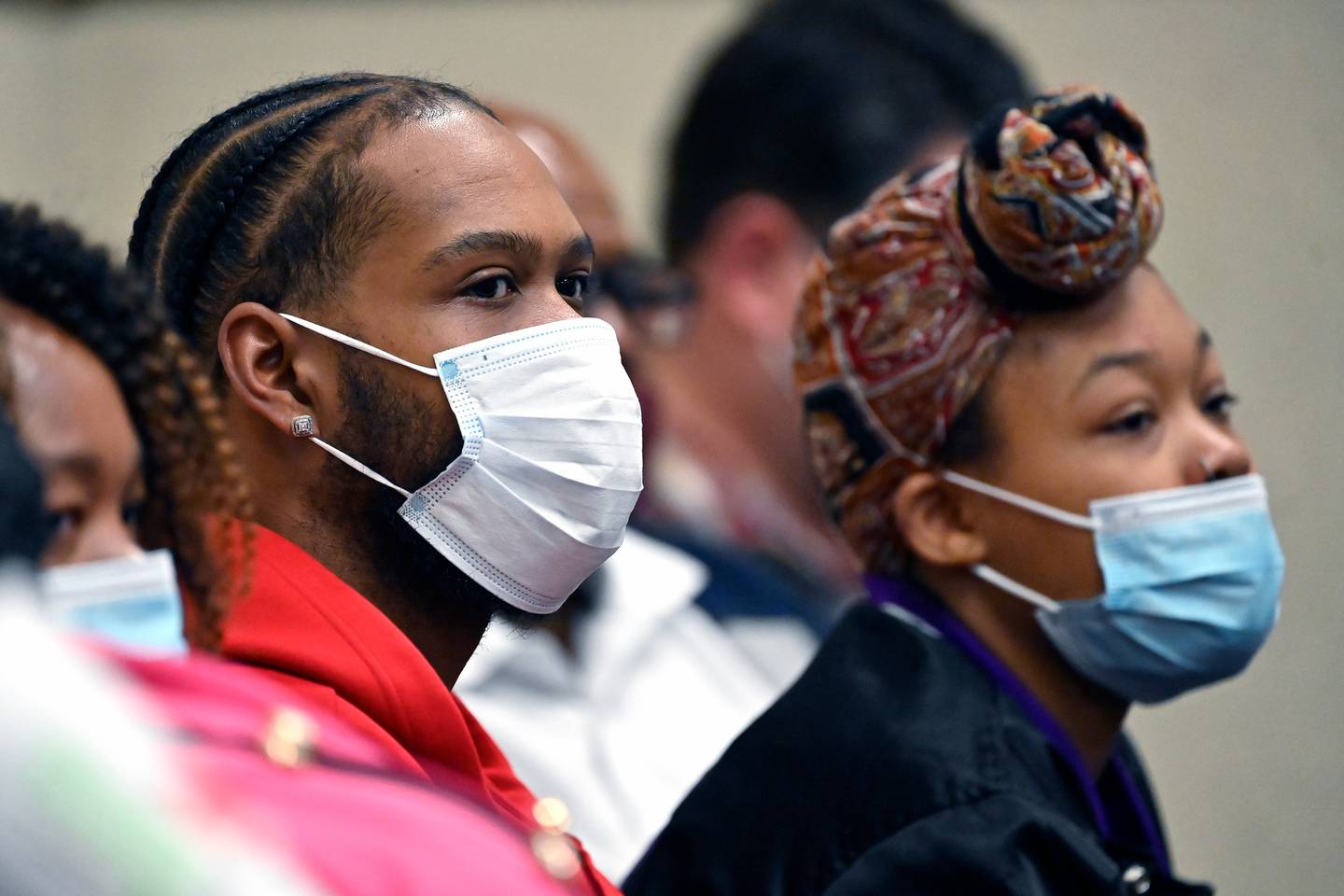 Kenneth Walker, left, boyfriend of Breonna Taylor, and her sister Ju'Niyah Palmer listen to testimony during the trial of Brett Hankison. Photo / APÂ