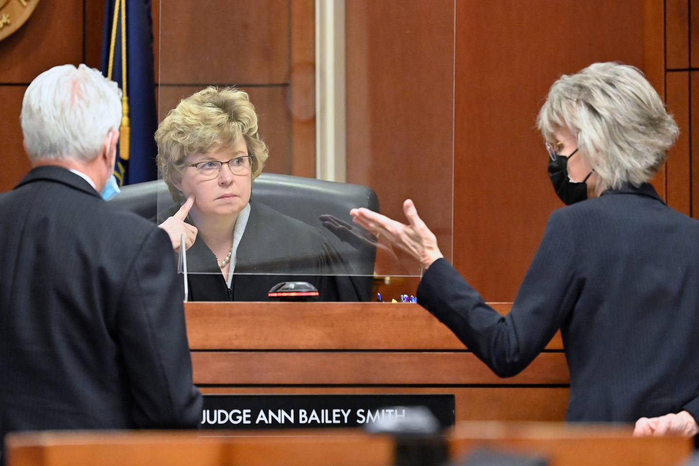 Circuit Judge Ann Bailey Smith listens to Assistant Kentucky Attorney General Barbara Maines Whaley and defence attorney Stewart Mathews. Photo / APÂ
