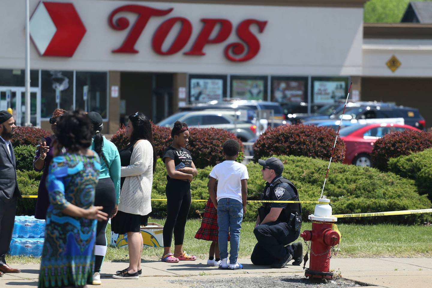 The Buffalo attack prompted grief and anger in the predominantly Black neighbourhood around Tops Friendly Market. A group of people gathered there on Sunday afternoon to lead chants of "Black lives matter" and mourn victims that included an 86-year-old woman, Ruth Whitfield, who had just visited her husband in a nursing home and a supermarket security guard, Aaron Salter, both of whom were Black.Â