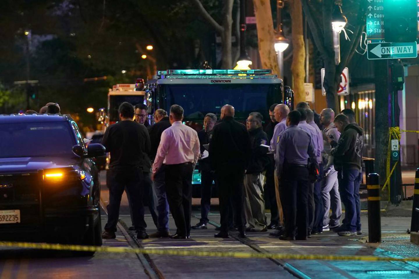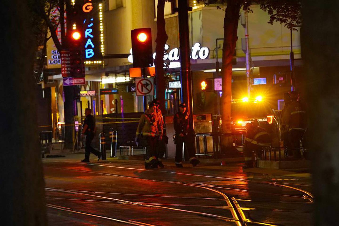 Emergency personnel walk near the scene of an apparent mass shooting in Sacramento. Photo / APÂ