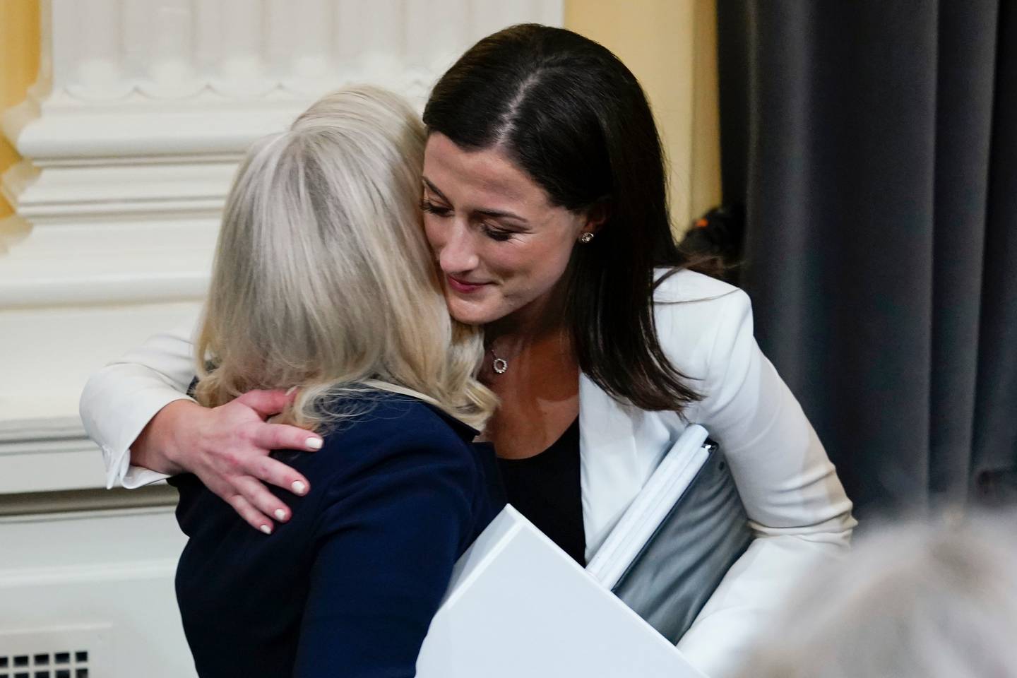 Cassidy Hutchinson, former aide to Trump White House chief of staff Mark Meadows, hugs vice chair Liz Cheney, after testifying to the House select committee investigating the Jan. 6 attack. Photo / AP