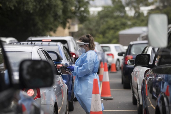 A healthcare worker screens a member of the public at a drive-thru Covid-19 testing site in Sydney, Australia. Photo / APÂ