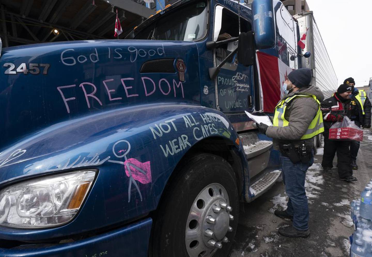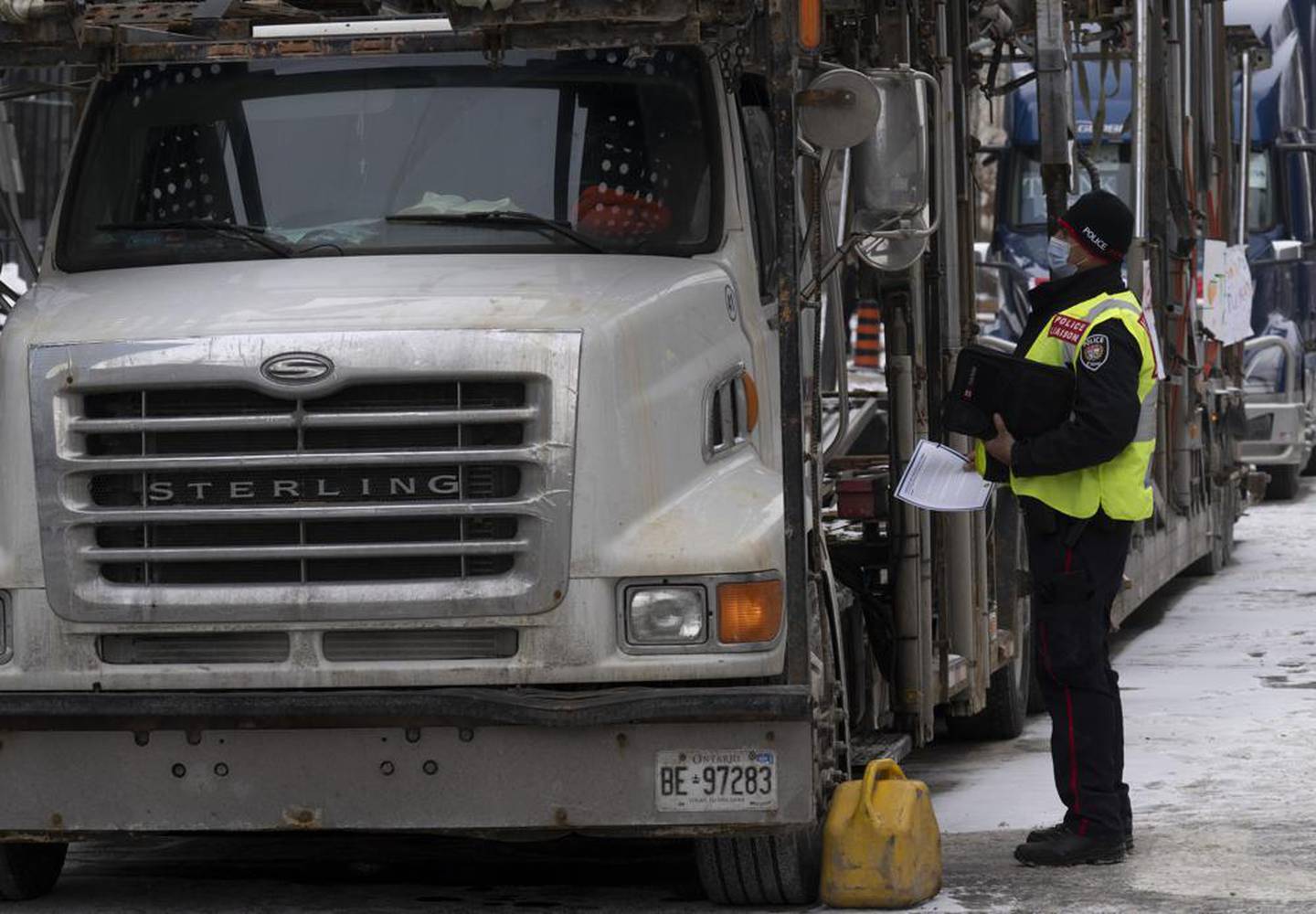 Authorities in yellow police liaison vests went from rig to rig, knocking on doors and handing truckers leaflets informing them they could be prosecuted, lose their licenses and see their vehicles seized under Canada's Emergencies Act. Police also began ticketing vehicles.Â